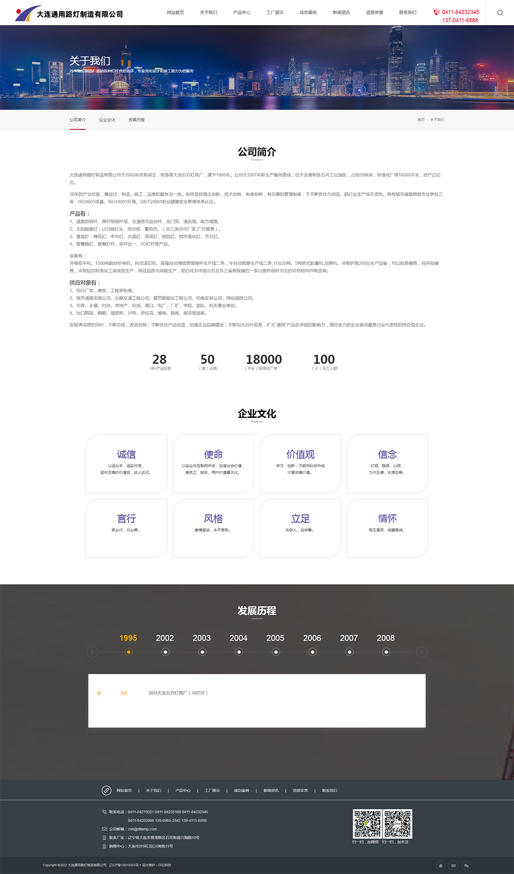 大連通用路燈制造有限公司于2002年改制成立,前身是大連北方燈具廠,建于1995年。公司于2007年新生產(chǎn)基地落成,位于金普新區(qū)石河工業(yè)園區(qū),占地50余畝,標準化廠房18000平米,資產(chǎn)過億元。