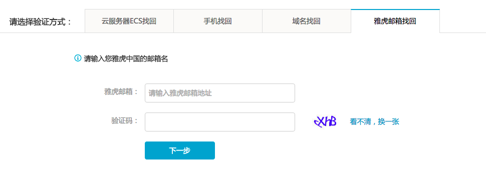 目前支持四種方式找回登錄名,手機(jī)、云服務(wù)器ECS找回、域名、雅虎郵箱找回。