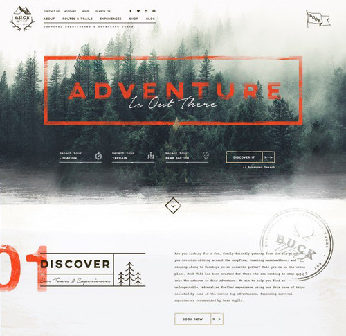 在下面的這個(gè)設(shè)計(jì)案例中,可以使用降低了飽和度的橙紅色,將其放置在山頂同樣降低了飽和度的綠色上。利用互補(bǔ)色組合(英:Complementary Color Scheme),通過調(diào)整色彩的飽和度來吸引眼球,為你的設(shè)計(jì)賦予更多的活力。