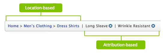這類基于屬性的面包屑常見于電子商務(wù)類網(wǎng)站,產(chǎn)品常?;陬悇e和屬性而組織到不同的子目錄中,基于屬性的分類讓用戶更容易理解產(chǎn)品和產(chǎn)品之間的關(guān)系,提供了更多不同的瀏覽路徑。