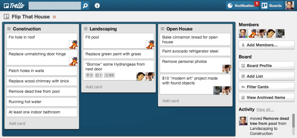 卡片很容易將一定范圍的任務(wù)進行歸類。拿 Trello 來舉例說明再適合不過,從 Kanban 里面看,所有的管理項都是完全基于卡片的,每一個板子了都填充著卡片,而每個卡片都代表一個單獨的任務(wù)。