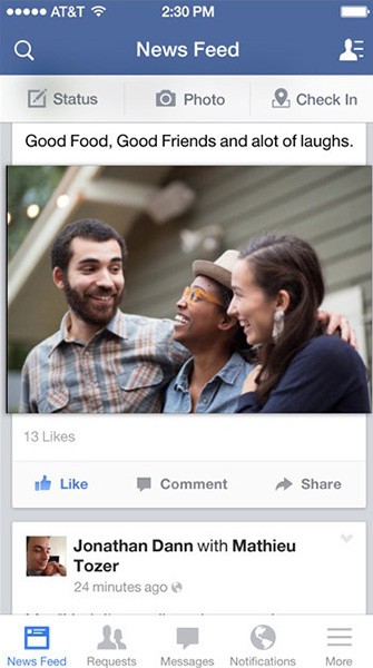 Facebook 充分利用卡片式的設(shè)計將每個事件的概要信息打包到卡片中??ㄆ降牟季衷O(shè)計正是在諸如 Facebook 這樣的巨頭的引領(lǐng)下變得流行開來。