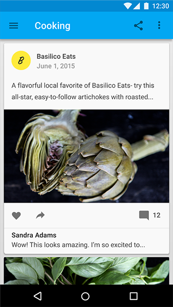 卡片出現(xiàn)在一個信息流中時,便能夠創(chuàng)建出一系列符合自然時間軸的事件。想想看 Facebook 在新的信息流中是如何使用卡片來描述一個事件概述的。雖然總的信息流是無底限的,但是每一個卡片都是互相獨立,且包含了一定的可供操作的內(nèi)容。