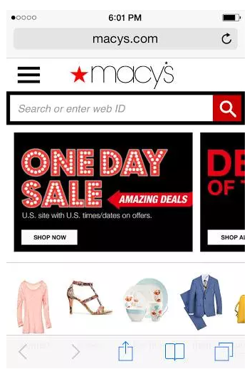搜索欄要放在網(wǎng)頁的顯目位置(如屏幕頂部)就像 MACY 的網(wǎng)站