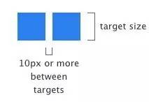 為了處理這些錯(cuò)誤并防止用戶誤操作,你必須確保按鈕有恰當(dāng)?shù)某叽绾涂臻g位置,這樣才更好地適合手機(jī)用戶操作。下圖是手機(jī)網(wǎng)頁中,按鈕間最佳的最小距離。