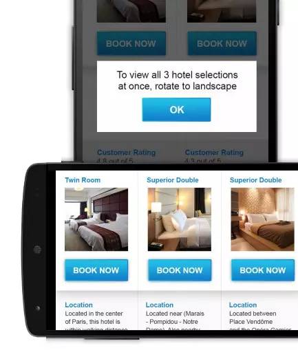 如果網(wǎng)頁有適配手機(jī)橫屏與豎屏的瀏覽,那么要提醒用戶切換成最佳的屏幕方向。因?yàn)槌悄闾崾居脩粢D(zhuǎn)屏幕(比如彈出一個(gè)會(huì)話框),不然他們只會(huì)照常瀏覽網(wǎng)頁。