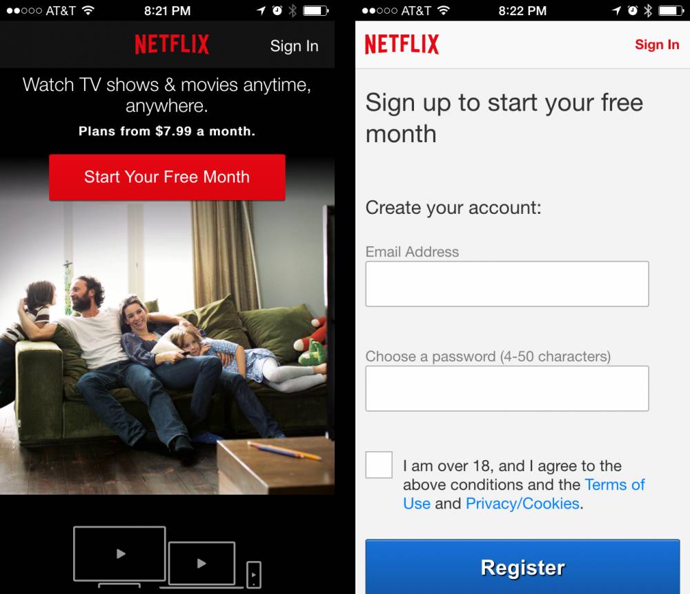 Netflix 提供了一個(gè)月的免費(fèi)使用,但用戶只有登錄賬戶才能瀏覽網(wǎng)頁內(nèi)容。