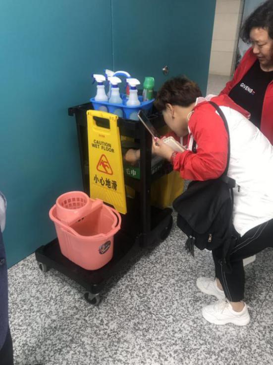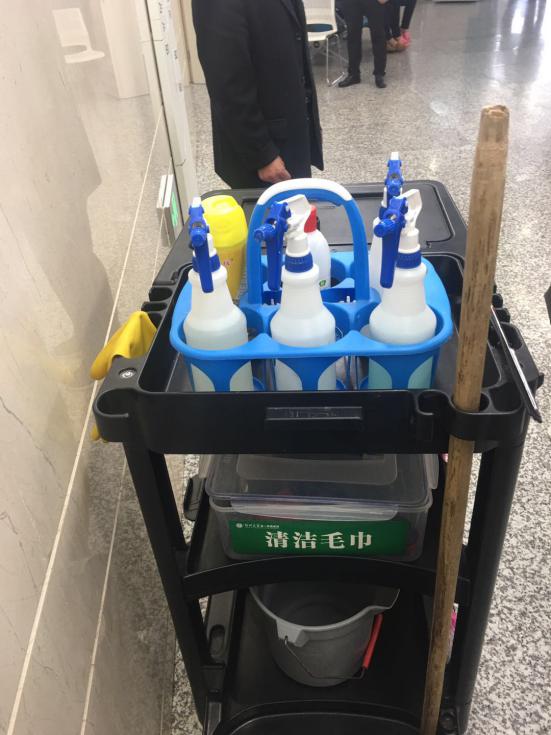 保潔車干凈、整潔、配備齊全。從物品的分類,合理的擺放等細節(jié)方面充分體現(xiàn)了公司的管理方式,保潔員的整體素質。
