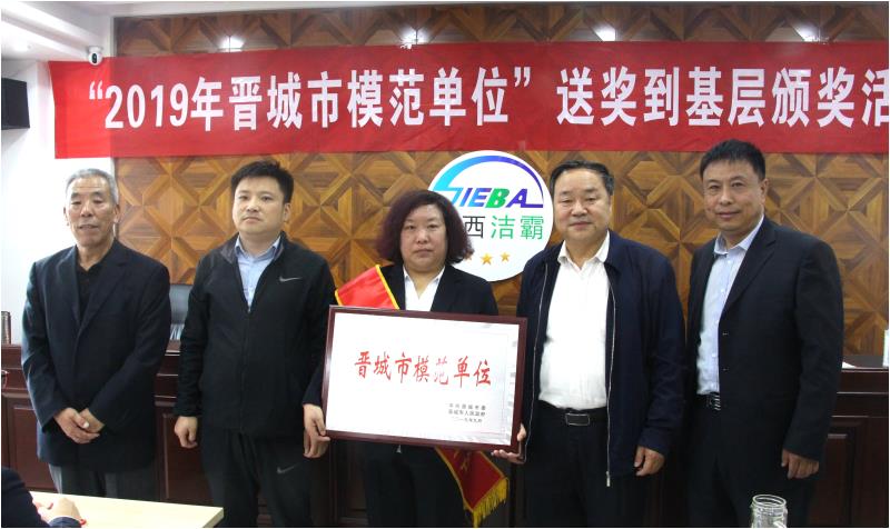 公司副總經(jīng)理史志霞首先介紹了公司的基本情況。隨后市總工會商貿(mào)工會主席張玉濤宣讀了晉城市潔霸清潔公司榮獲“2019年晉城市模范單位”批復表彰文件,市總工會副調(diào)研員刁忠孝向公司副總經(jīng)理史志霞授帶頒獎,并頒發(fā)了獲獎榮譽證書。