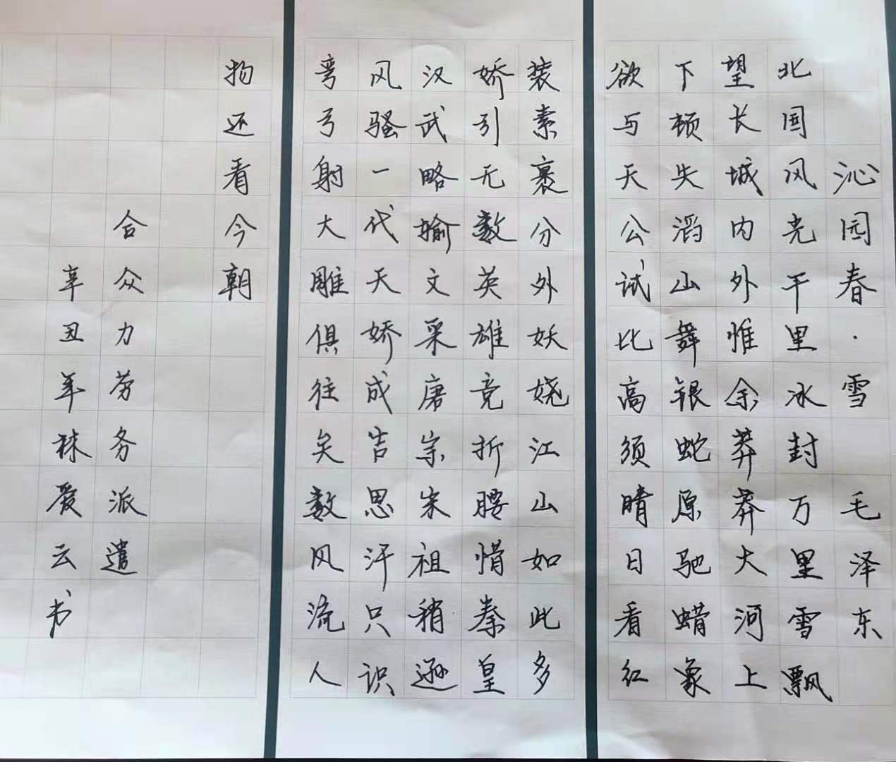本次硬筆書法比賽活動圍繞喜迎建黨百年華誕”主題,以摘抄歌頌黨、歌頌祖國、歌頌企業(yè)的詩詞、散文、歌賦等為書寫內(nèi)容,參賽選手個個滿懷激情,用心書寫每一個漢字,筆畫流暢,結(jié)構(gòu)勻稱,整體美觀,表現(xiàn)出良好的書寫功底。公司組織相關(guān)人員參賽員工的作品進行客觀公正的評審,評選出一、二、三等獎若干名。
