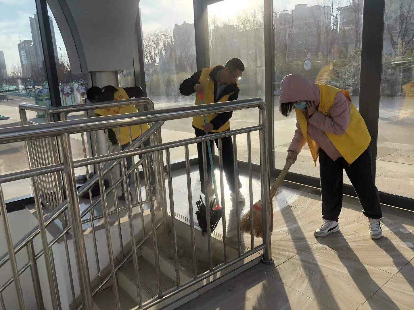 12月20日——22日,潔霸志愿者走進(jìn)金鳳凰廣場和西街泰森社區(qū),開展衛(wèi)生清潔志愿服務(wù)活動;顒又,他們身穿黃色馬甲,手拿笤帚、拖布、夾子等清理工具,有的清掃地面;有的拖洗樓梯;有的擦洗欄桿;有的撿拾煙頭、紙片;有的規(guī)范車輛擺放,以實(shí)際行動參與到文明創(chuàng)建行動中來,全力支持我市創(chuàng)文迎檢工作,爭做創(chuàng)文的宣傳者、踐行者、守護(hù)者。