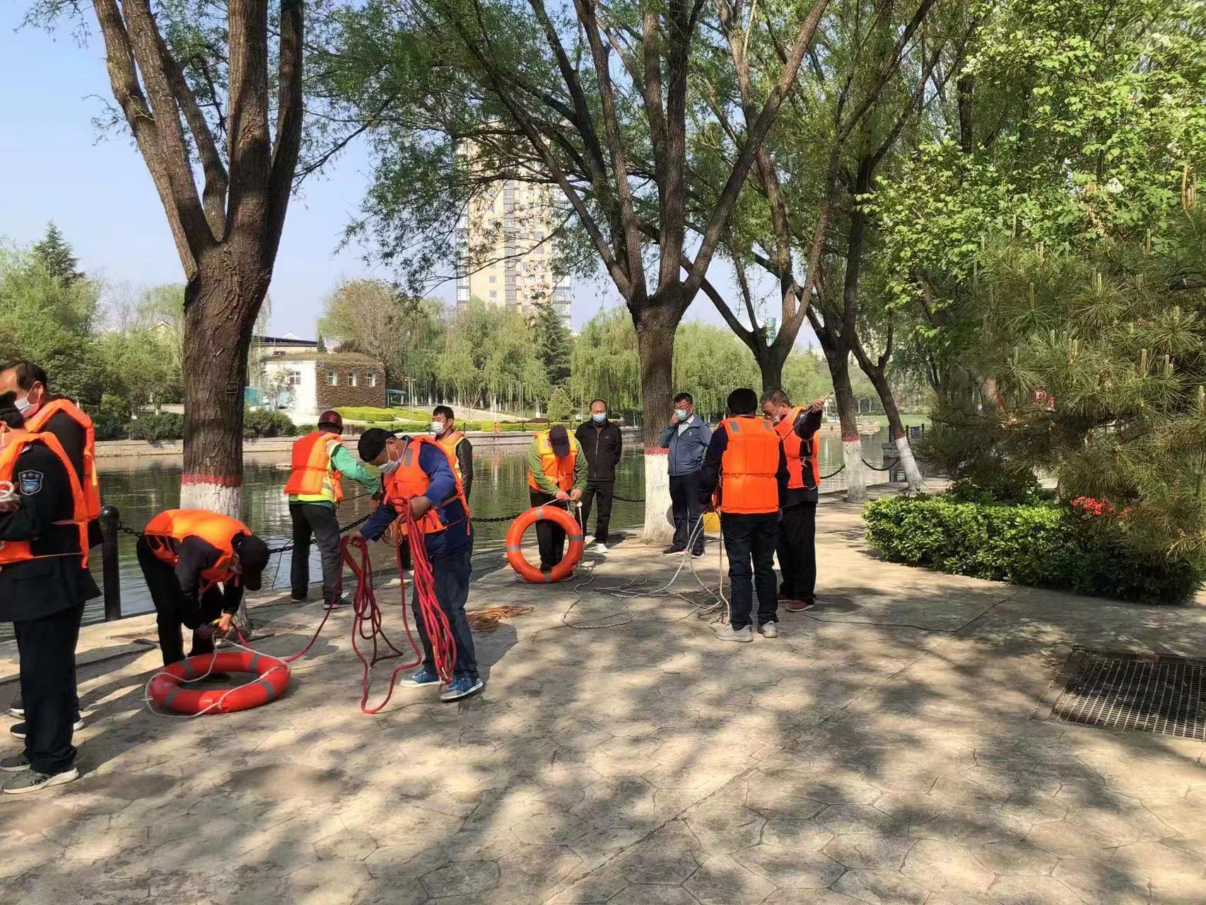 為進一步強化應(yīng)急預(yù)案保障措施的落實,提高管理人員和員工防汛搶險應(yīng)急反應(yīng)和處置能力,教育管理人員及員工如何正確、準確應(yīng)對極端天氣,迅速處理防汛突發(fā)事件,4月18日上午,合眾力公司景觀河道項目點在西秀園組織開展防汛搶險應(yīng)急演練。
