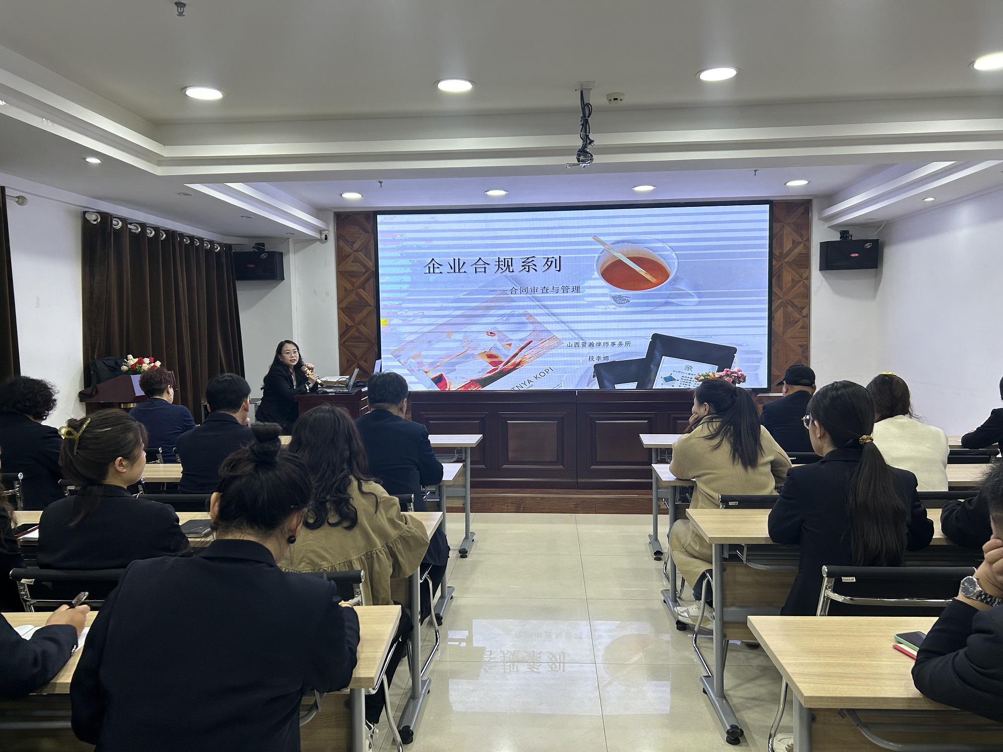 為加強企業(yè)合規(guī)管理,防控合規(guī)風險,提升公司管理人員素質(zhì),3月14日,公司在黨群活動中心舉辦專題培訓,邀請山西晉瀚律師事務所段李娜律師對企業(yè)合規(guī)系列重點對合同的審查與管理進行了解讀。公司領導、各部門經(jīng)理及部分管理人員30余人參加培訓。