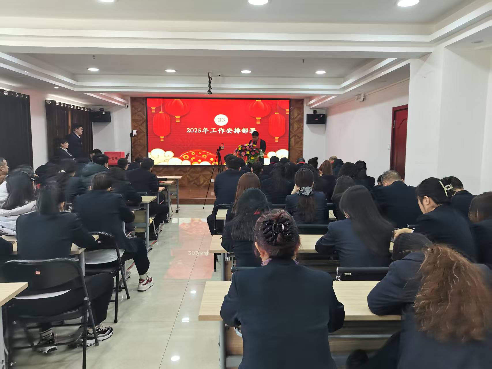 會(huì)議召開(kāi)前,綜合辦公室、山西合眾力公司、潔霸洗業(yè)、保潔部、百潔物業(yè)、潔霸超市、潔霸物業(yè)、財(cái)務(wù)部、清洗一部、清洗二部、清洗三部、運(yùn)營(yíng)中心、培訓(xùn)學(xué)校、人力資源部、智能科技公司等子公司和部門(mén)分別登臺(tái)展示團(tuán)隊(duì)士氣和精神風(fēng)貌,集中展現(xiàn)2025年的奮斗目標(biāo)和決心,集體宣讀企業(yè)文化。 2024年干得怎么樣?2025年怎么干?總經(jīng)理程晉軍作了深情回顧,進(jìn)行了新的工作部署。