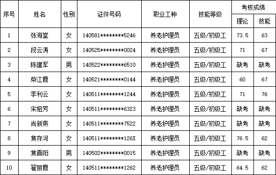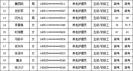 山西潔霸清潔服務(wù)集團(tuán)股份有限公司職業(yè)技能等級(jí)認(rèn)定中心現(xiàn)將2026年4月28日認(rèn)定人員成績(jī)公示如下: